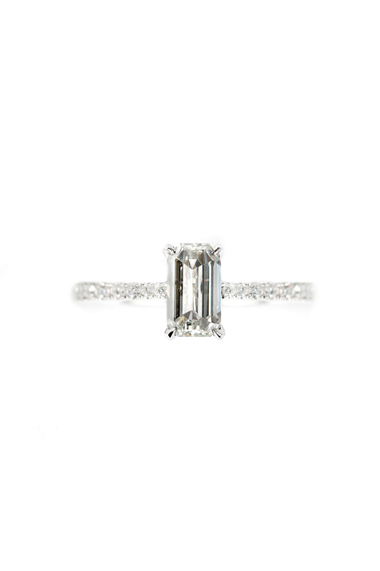 Emerald ring with white diamonds in 18k white and yelllow gold