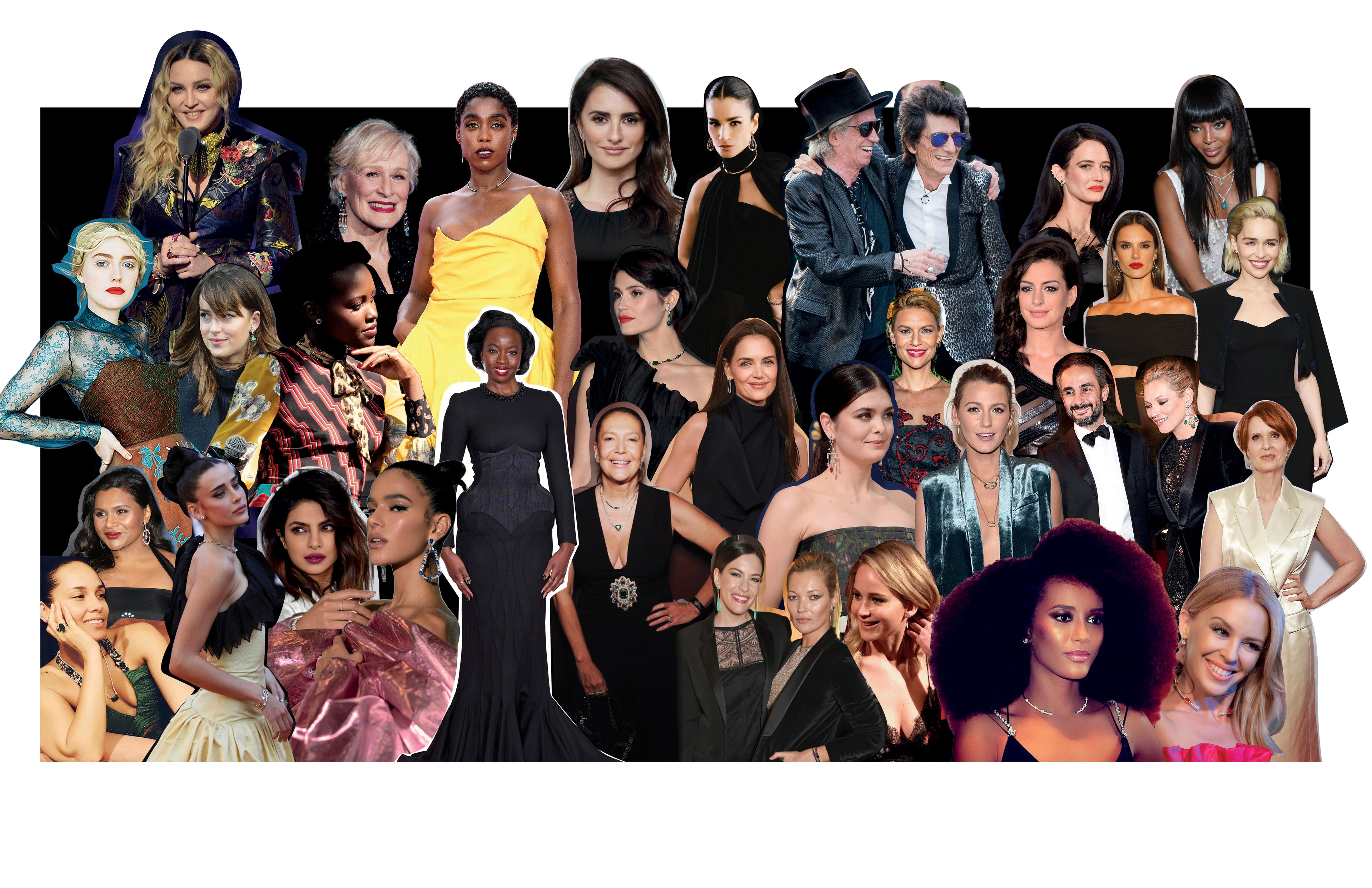 Penélope Cruz, Madonna, Glenn Close, Lashana Lynch, Dakota Fanning, Dakota Johnson, Eva Green, Livia, Lupita Nyong’o, Danai Gurira, Alicia Keys, Gemma Arterton, Priyanka Chopra, Bruna Marquezine, Ronnie Wood, Keith Richards, Uzo Aduba, Claire Danes, Anne Hathaway, Alessandra Ambrosio, Carol Ribeiro, Liv Tyler, Gwendoline Christie, Samantha Colley, Blake Lively, Kate Moss, Jennifer Lawrence, Taís Araujo, Kylie Minogue, Mindy Kaling, Katie Holmes, Liv Tyler, Dakota Johnson, Gwendoline Christie, Poorna Jagannathan, Rita Ora, Donata Meirelles, Tais Araújo, Cynthia Nixon
